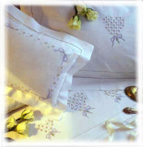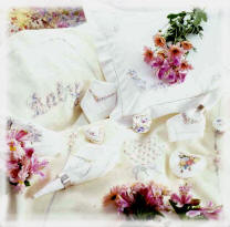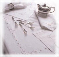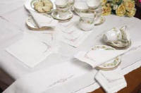 table. Soft embroidered linen will complement an elegant home or add the