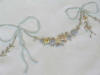 pink grub rose buds, soft green leaves and a pale blue ribbon that wraps