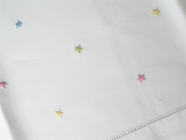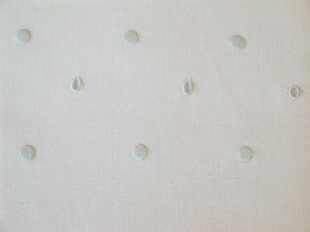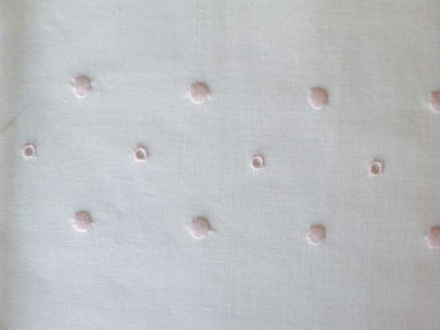 Spot design has hand embroidered multi coloured soft pastel dots scattered
